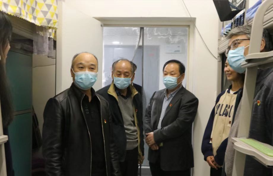 卢爱刚一行深入学生宿舍、辅导员值班室等,细致了解并关心学生在近期疫情防控应急状态下的宿舍生活与学习情况,与坚守富平校区疫情防控工作一线的辅导员亲切交流,询问近期学生工作实际情况,关心学生思想动态情况。