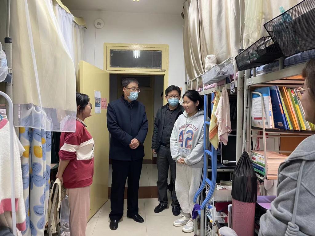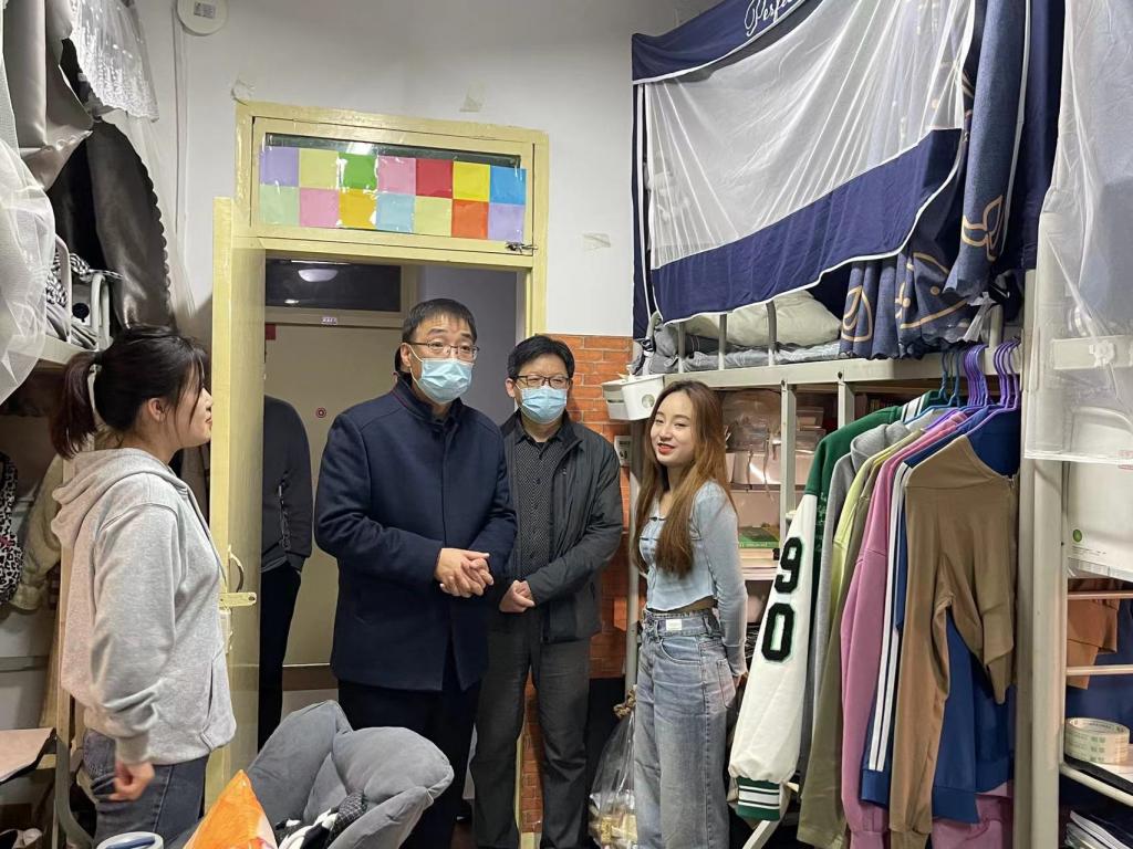在走访学生宿舍时,韩小卫细心询问了同学们具体情况,了解同学们的学习生活情况,并跟学生们交流了观看党的二十大开幕实况学习感悟;同时叮嘱同学们要主动关注疫情动态,严格遵守疫情防控期间学校的各项管理规定,减少网购、拒绝外卖,做好每日宿舍开窗通风、卫生清洁工作,注意用电安全,学会劳逸结合,调整心态及生活节奏,有困难、有问题可以及时向辅导员提出来。一句句亲切的问候和叮咛给予了同学们战胜疫情的信心和鼓励。