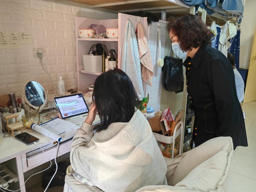 巡查过程中,王菊霞细致了解学生在宿舍学习和生活情况,对学生的在线学习提出明确要求:一是要提前进入课堂,调试好设备,准备好学习用具;二是要积极参与在线学习与课堂互动,做好听课笔记;三是要认真做好课后复习和总结,可以利用思维导图对所学内容加以总结,并对思维导图不断完善和补充,提升学习效果;三是要增强自我约束力,注意宿舍卫生,保障线上教学期间的身心健康。