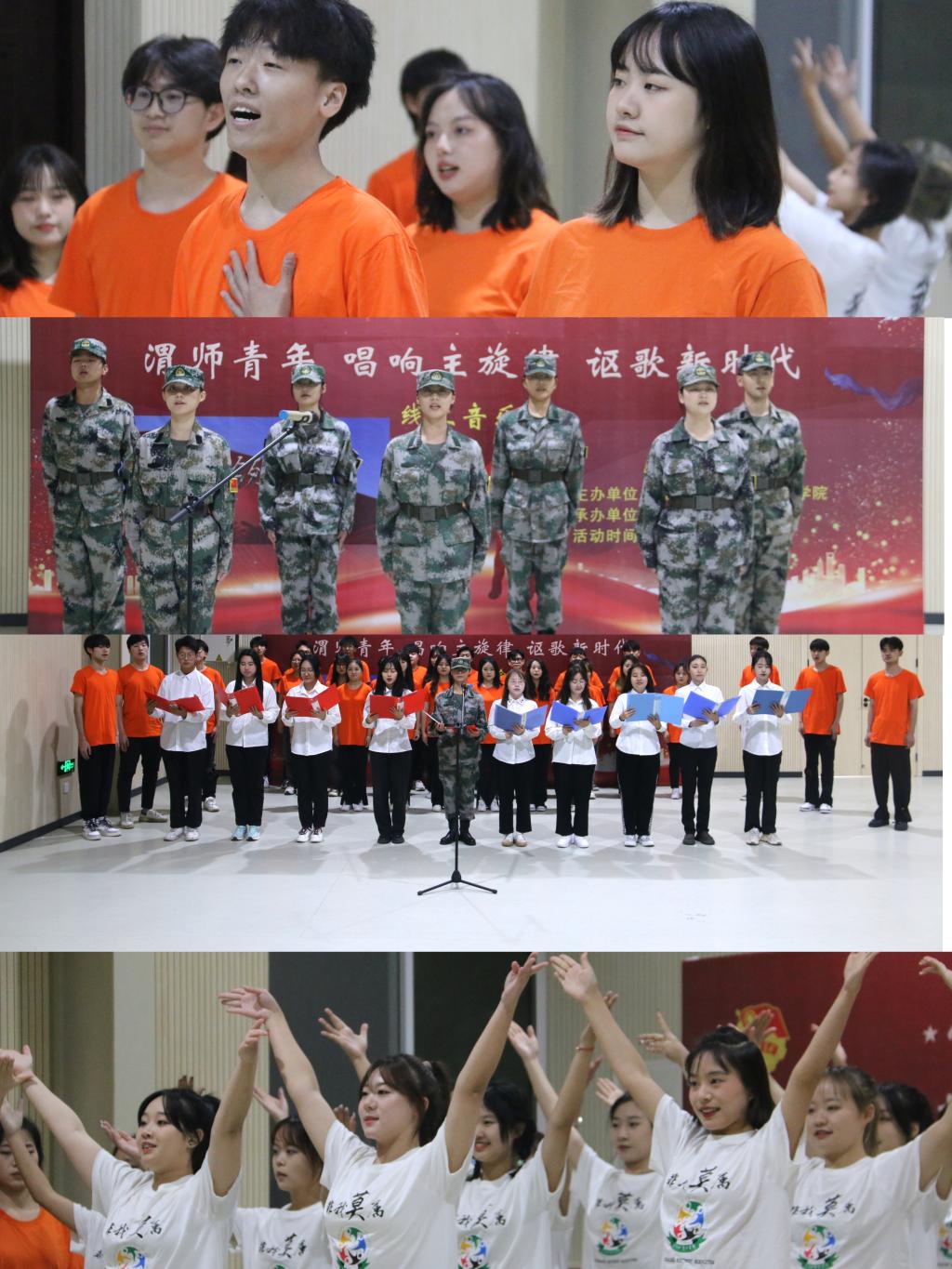 10月中旬,党的二十大胜利召开,渭师学子自发传唱《领航》红色经典曲目,用歌声唱响主旋律,讴歌美好新时代,唱出青年一代“请党放心 强国有我”青春誓言。