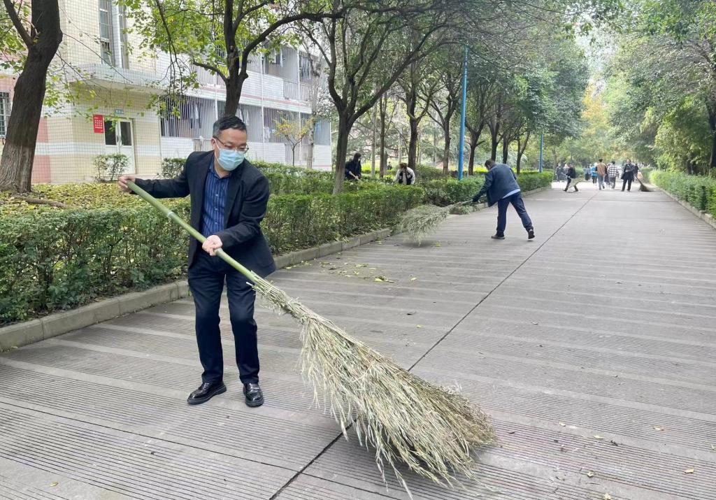 活动一开始,各学院劳动队伍齐聚卫生责任区域。全体干部、教师布排有经验、指导有方法。大家一切行动听指挥,责任分工明确、协作互助到位。同学们你捡我拾、边扫边收,热火朝天。整个校园环境很快就有了提升:路面干净,绿篱、绿化带整洁。