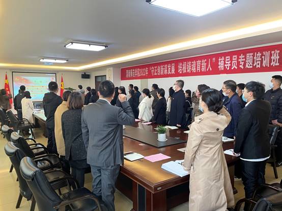 开班仪式上,人文学院辅导员王乐靖、体育学院学工办主任朱颖妮分别作为新聘辅导员代表、学工办主任代表发言。学生教育管理科科长王伟伟带领全体辅导员重温了高校辅导员誓词。