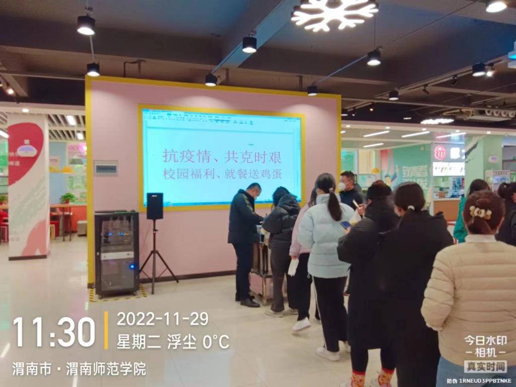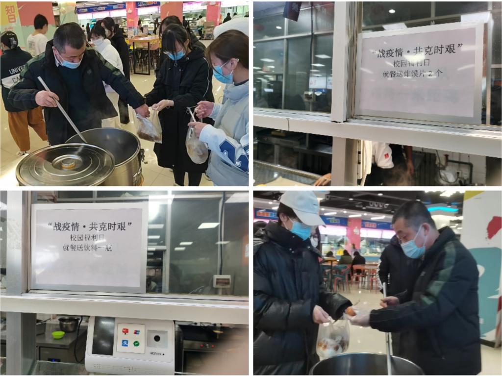 11月29日,“战疫情•共克时艰”之福利日,就餐送爱心活动在伟德官网朝阳、富平两个校区三个餐厅拉开帷幕,全体档口人员结合自己的饭菜售卖品类情况开展了形式多样的餐厅就餐送爱心活动,各档口送鸡蛋,送粥品,送饮料,送纸巾,让全校师生在这个特殊的封控时期切身感受到了学校大家庭的温暖。此项爱心活动从11月29日开始一直持续五天时间,使“爱心成林,关怀成册。”后续全体驻校餐饮公司也会以自愿捐赠的形式购买物资再给同学们送去温暖和关怀。