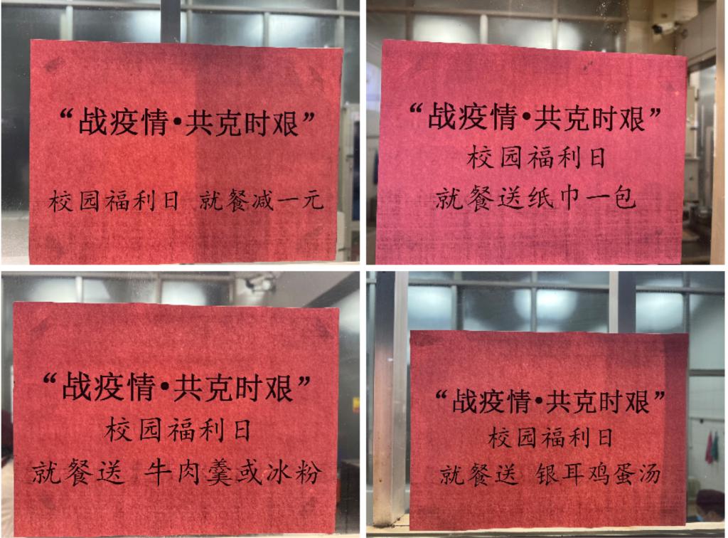 近期学校根据属地政策,实行疫情期间校园封闭式管理。后勤服务中心饮食管理科在提前谋划对接,想办法保障粮油米面及蔬菜等基本物资供应的基础上,推出系列餐厅送温暖爱心活动。
