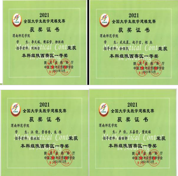 近日,全国大学生数学建模竞赛组委会公布了2022年数学建模竞赛获奖名单,在学校领导的精心指导和大力支持下,经过教务处和数学与统计学院认真组织和培训,数学与统计学院胡旭芳、张培培、孙心宇三位同学组成的参赛队(指导老师董晓萌)喜获全国一等奖,伟德国际1949官网也再次被评为优秀组织工作奖,这是伟德国际1949官网从2004年参加该项赛事以来第二次连续获得全国一等奖,此外伟德国际1949官网学子还获得陕西省一等奖8项、二等奖12项的优异成绩。