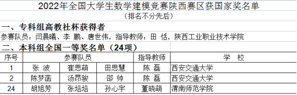 2022年陕西赛区共组织3500余支本科队参赛,共获得全国一等奖24项。伟德国际1949官网在该项竞赛中已经连续三年荣获国家奖和优秀组织工作奖,作为省内唯一获得国家一等奖的非西安地区的本科院校,对培养大学生数模竞赛的参加热情和积极性起到极大的带动作用,也切实达成了学校应用创新人才培养的总目标,人才培养效果显著,社会声誉和影响力不断提升。(通讯员 段卫国 戴磊 审核人 陈斌)