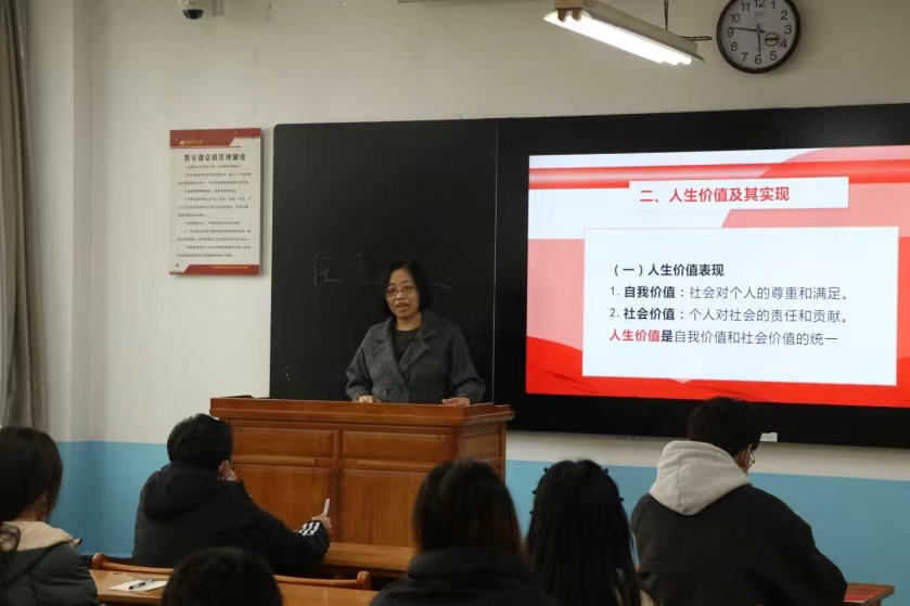 本次思政课练兵参与教师为马克思主义学院周菊芳老师,讲授内容为《马克思主义基本原理概论》课“人生价值及其实现”一节。