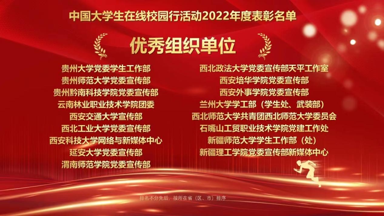 近日,教育部中国大学生在线2022年度校园号建设研讨暨校网通工作年会在北京召开。会上揭晓了2022年度表彰名单。伟德官网获得“年度校园新媒体互动百强”、“校园行活动优秀组织单位”荣誉称号,这是伟德官网首次获得该荣誉。