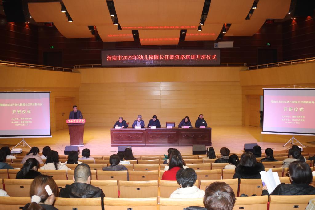 2月22日上午,由渭南市教育局主办、伟德官网承办的渭南市2022年幼儿园园长任职资格培训项目开班仪式在逸夫楼音乐厅举行。渭南市教育局教师工作科科长庞文红,继续教育学院院长刘永勤,项目首席专家、教育科学学院院长李西彩以及100余名学员参加开班仪式。开班仪式由继续教育学院副院长苟鹏军主持。