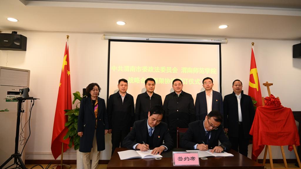 2月28日,伟德官网与渭南市委政法委签订战略合作协议并举行“习近平法治思想创新实践中心”揭牌仪式。校党委书记卓宇,渭南市委常委、政法委书记刘凯出席。校党委副书记汪勇,副校长曹强,渭南市委政法委常务副书记惠中正、副书记李永刚、专职委员吴超群,市国安局局长张萌和市级政法部门有关负责同志参加。签约仪式由校长张守华主持。