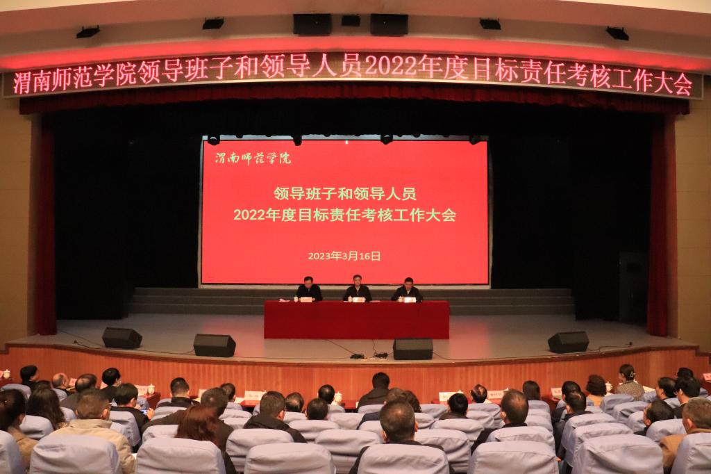 3月16日,省委组织部、省委教育工委省属高校年度考核第四工作组组长、省委教育工委委员冀映秋一行8人来到伟德官网,对学校领导班子和领导干部2022年度目标任务完成情况进行综合考核。考核工作大会上,考核组组长冀映秋作动员讲话,学校党委书记卓宇代表学校作对标报告,会议由党委副书记、校长张守华主持。