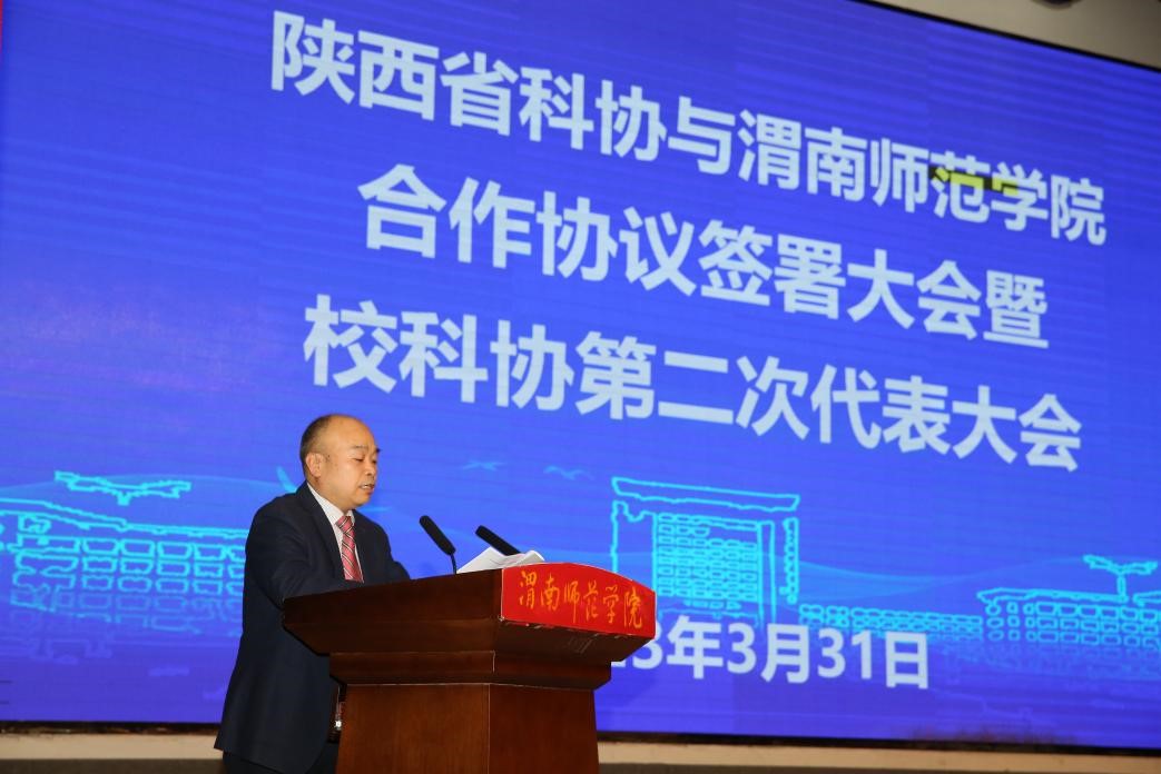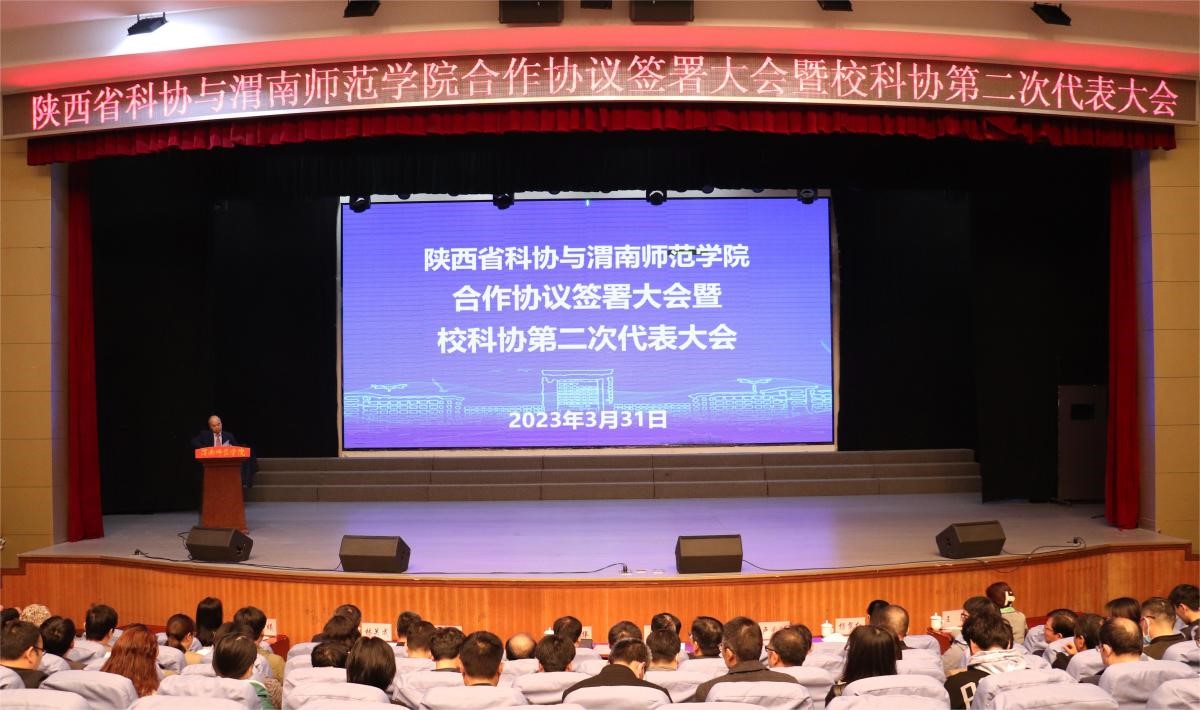 3月31日下午,陕西省科协与伟德官网合作协议签署大会暨校科协第二次代表大会在朝阳校区陶然楼演艺厅召开。省科协党组书记李豫琦,党组成员、副主席吕建军,渭南市副市长刘宝琳,校长张守华出席大会,会议由副校长卢爱刚主持。