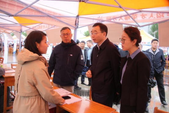 伟德官网校长、党委副书记张守华,党委副书记、纪委书记、监察专员肖耀刚,党委副书记袁亮,党委委员、副校长常青林,渭南市人力资源和社会保障局党组成员、副局长董建明,渭南市公共就业和人才交流服务中心主任马会斌等领导亲临招聘会现场指导,与用人单位、参会学生亲切交谈。张守华向来校招聘的单位表示欢迎,对返校招聘的往届校友表示感谢,对应聘的毕业生表示勉励,希望学校与各单位加强联系与协作,进一步完善校地、校企合作机制,为学生搭建良好的就业、实践平台,为企事业单位发展提供优质人才资源。