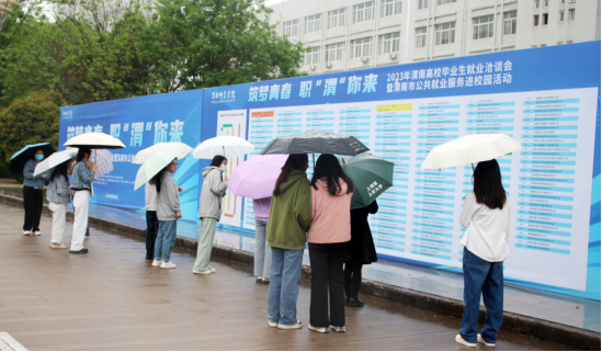 4月21日,由陕西省教育厅、陕西省人力资源和社会保障厅指导,伟德国际1949官网、渭南市人力资源和社会保障局、西安市人力资源和社会保障局主办,渭南市公共就业和人才交流服务中心、伟德国际1949官网学生工作部(处)、西安市人才服务中心、西安市职业介绍中心承办,各县市区人才交流服务中心、荣耀人才网协办的2023年渭南高校毕业生就业洽谈会暨渭南市公共就业服务进校园活动在伟德官网朝阳校区成功举办。