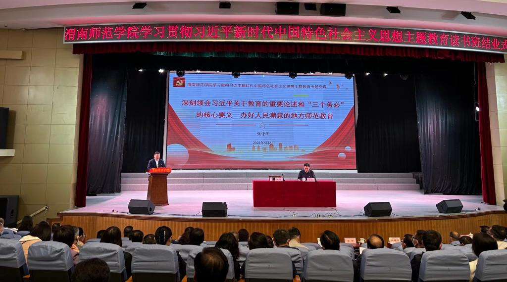 5月6日下午,学校学习贯彻习近平新时代中国特色社会主义思想主题教育读书班结业式上,校长、主题教育领导小组副组长张守华以《深刻领会习近平关于教育的重要论述和“三个务必”的核心要义 办好人民满意的地方师范教育》为题为学校副处级以上干部讲授专题党课。党委书记、主题教育领导小组组长卓宇主持专题党课。