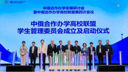 5月13日上午,中俄合作办学高校联盟学生管理工作委员会成立启动仪式。副校长王菊霞作为联盟常务理事会成员代表登台点亮启动装置,见证“中俄合作办学高校联盟学生管理工作委员会”正式成立。