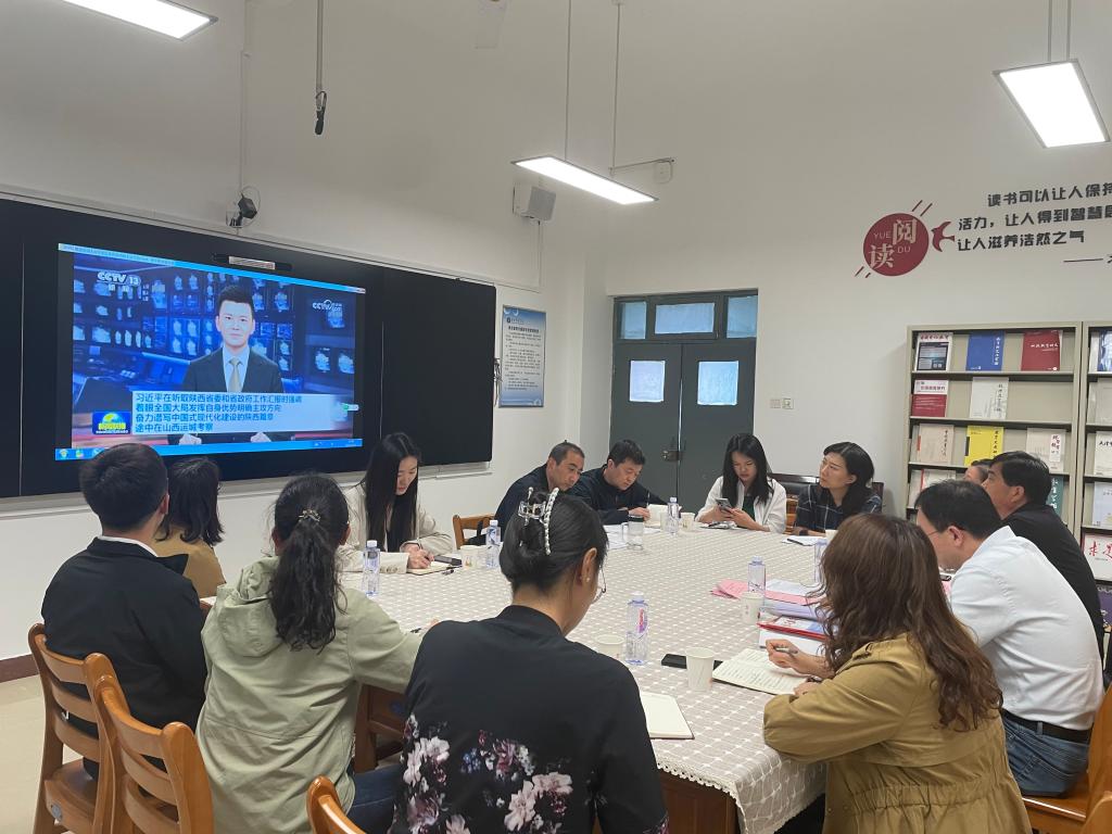 会议集中观看《凝心聚力奋斗实干——习近平总书记听取陕西省委和省政府工作汇报、在山西运城考察重要讲话》《习近平:着眼全国大局发挥自身优势明确主攻方向 谱写中国式现代化建设的陕西篇章》;领学了习近平给中国美术馆的老专家老艺术家的回信、在中国-中亚峰会上的主旨讲话等内容。