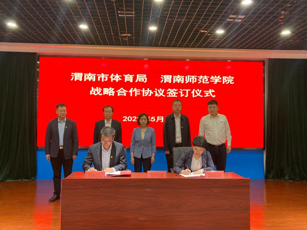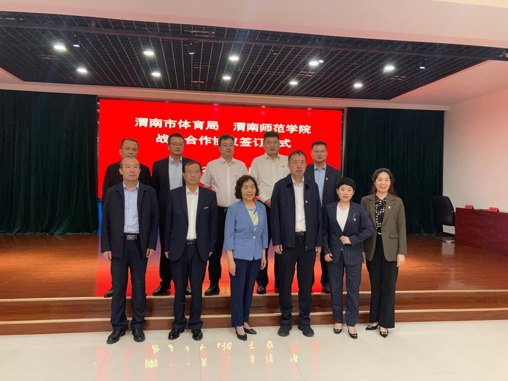 5月23日下午,伟德官网与渭南市体育局签订战略合作协议。校党委委员、副校长王菊霞、曹强,渭南市体育局局长秦峰、副局长王晓燕、李永强,仪式由渭南市体育局党组成员、副局长郭军主持。
