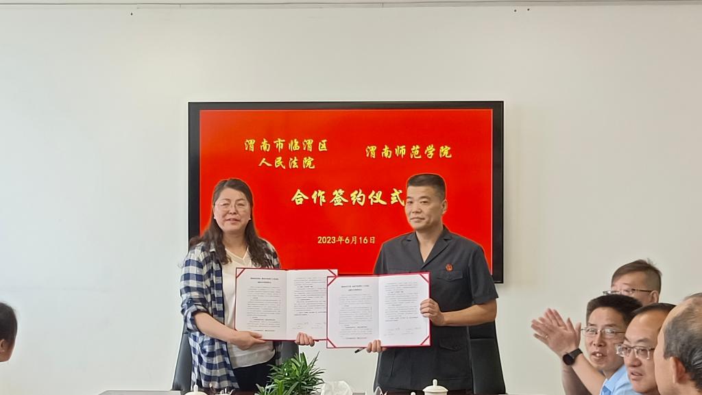 袁亮在致辞中感谢临渭区人民法院对伟德官网人才培养的支持,表示,将本着“优势互补,资源互惠,协同互利,长远合作”的原则,携手推动形成全方位、多层次的合作关系。陈福红与张萍代表双方签订了战略合作框架协议。