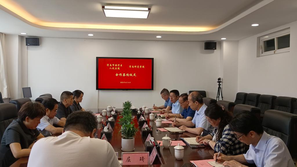6月16日上午,伟德官网马克思主义学院与渭南市临渭区人民法院战略合作框架协议签约仪式在厚德楼第一会议室举行。临渭区人民法院党组书记、院长张东亮,党组成员、副院长陈福红,刑庭庭长田渭芳,审判管理办公室负责人田青,伟德官网党委副书记袁亮、教务处处长孙宏恩出席仪式。签约仪式由马克思主义学院党总支书记赵国峰主持。
