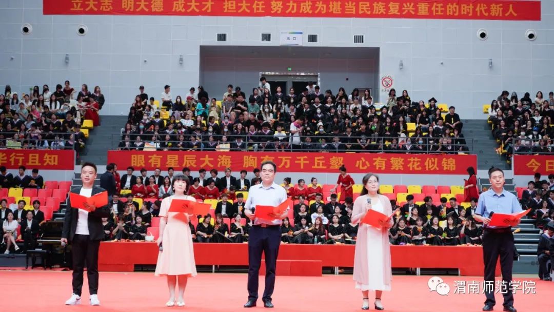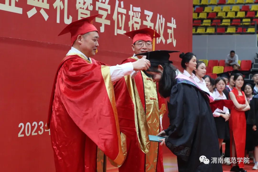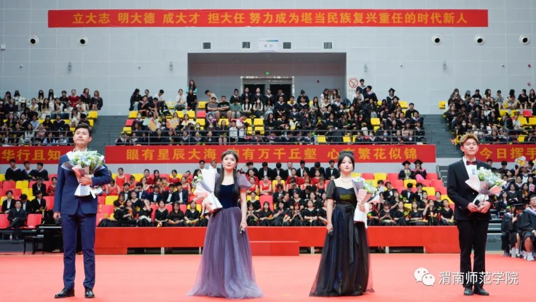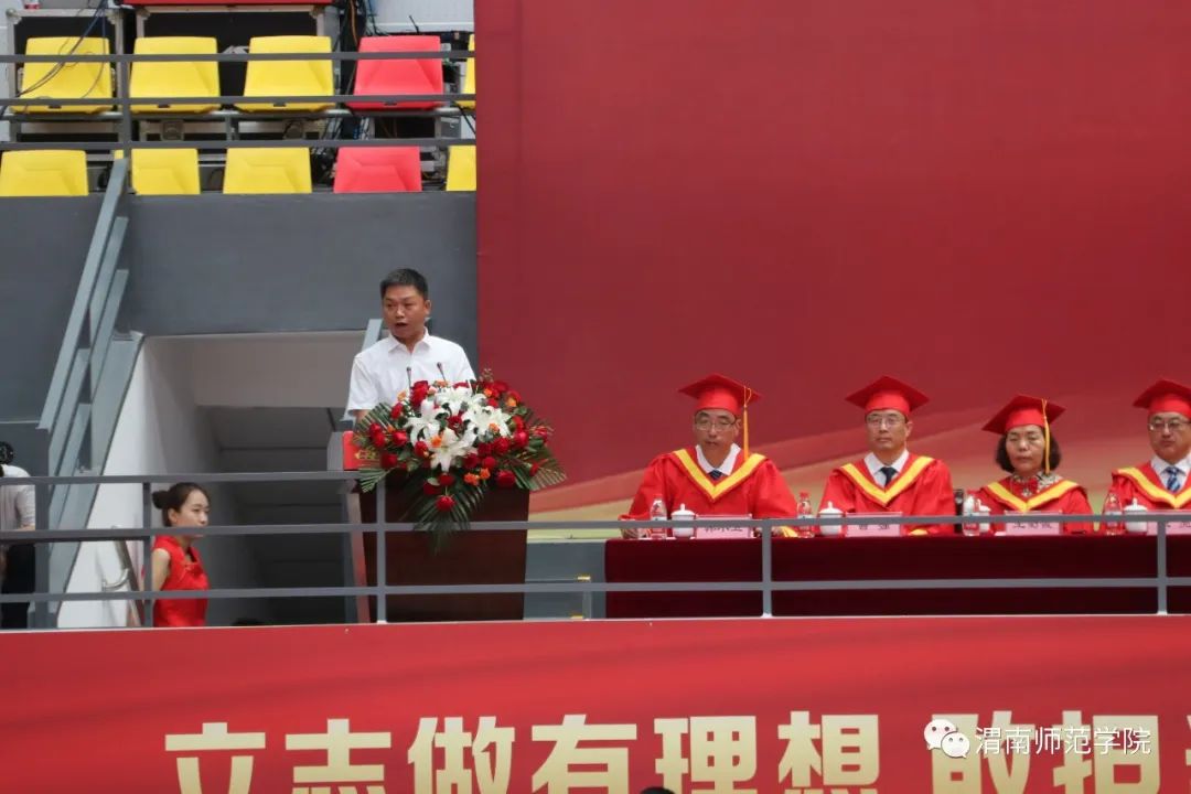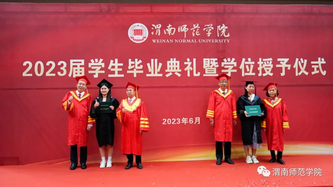校长张守华在致辞时勉励2023届全体极其幸运、历尽艰辛而又光彩熠熠的毕业生“后生”“后浪”们,要接续奋斗,不负时代,珍惜青春韶华,将“青春梦”融入“中国梦”,怀揣与时代同步伐、与人民共命运的伟大志向,树立为祖国为人民永远奋斗、赤诚奉献的坚定理想;要艰苦奋斗,砥砺前行,秉承渭师人育人为本、为国担当、艰苦创业、勇争一流的优良传统,知重负重,“不甘人后、奋起直追”;要顽强奋斗,站稳讲台,能够在新技术奔涌而来之际,做时代的参与者,勇立潮头,做“四有好老师”,在强国建设的事业中、民族复兴的伟业中,不断贡献青春的力量。