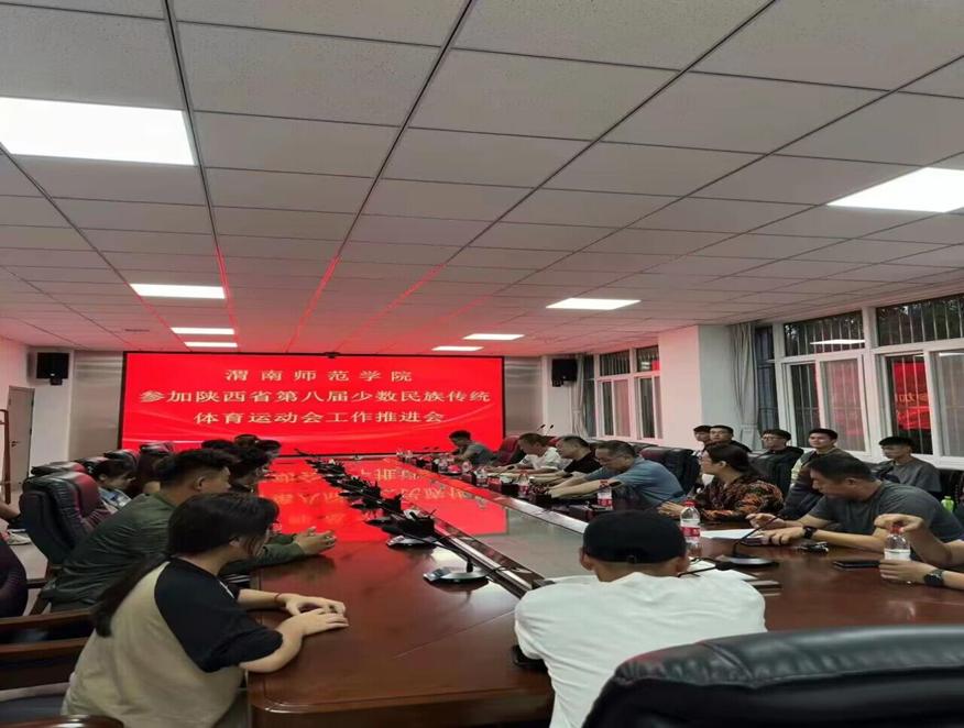 6月27日,学校召开参加陕西省第八届少数民族传统体育运动会工作推进会,渭南市委统战部副部长、市民宗局局长魏书萌出席,会议由校统战部副部长杨利民主持。