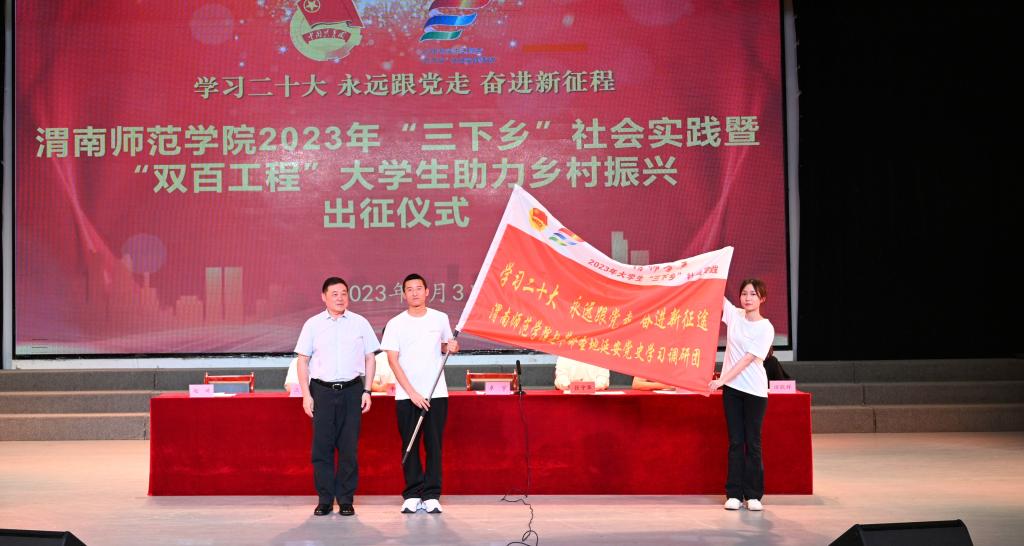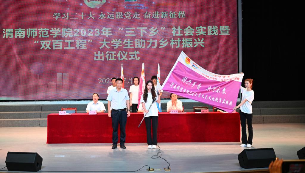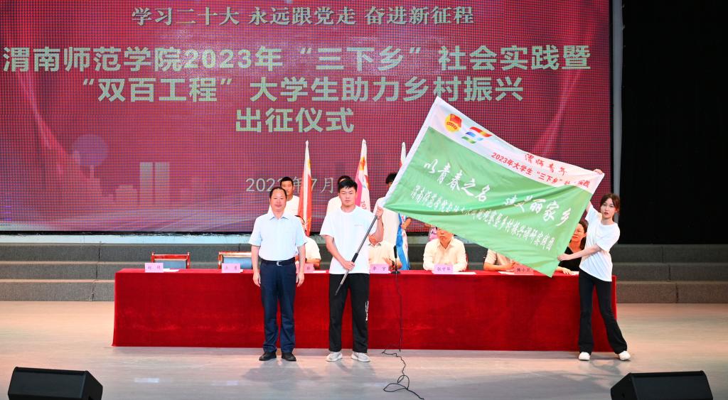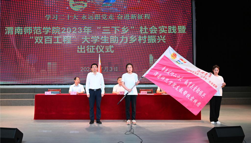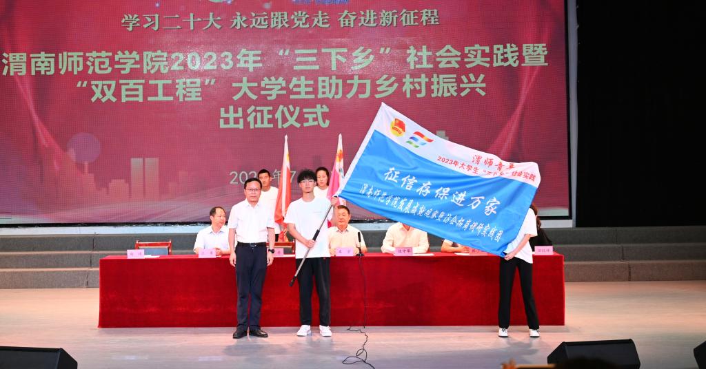 7月3日下午,伟德官网举行2023年暑期大学生社会实践活动出征仪式,党委书记卓宇,校长张守华,共青团渭南市委副书记李林,校党委副书记韩小卫、汪勇出席活动。仪式由校团委书记赵琦主持。