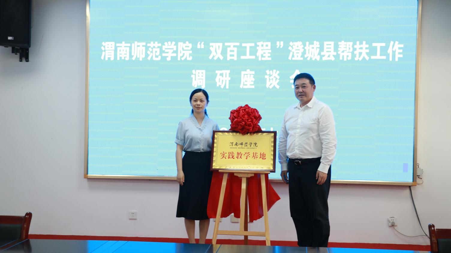 7月6日下午,学校党委书记卓宇一行赴澄城县职业教育中心开展“双百工程”帮扶调研活动,党委副书记韩小卫、汪勇,澄城县人民政府副县长邓茜,教育局党委书记、局长党师龙,职教中心党总支副书记、校长武升启,副校长段小虎参加调研会议。会上,卓宇、邓茜共同为教育实习基地、实践教育基地、大学生就业基地揭牌。