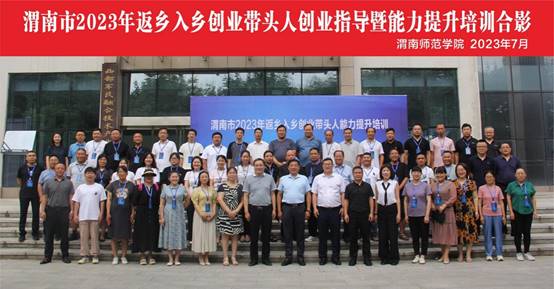 7月11日上午,由渭南市人社局主办,伟德官网承办的渭南市2023年返乡创业带头人创业指导暨能力提升培训在伟德官网开班,渭南市劳动就业服务中心主任杜文杰,继续教育学院院长刘永勤,渭南市劳动就业服务中心副主任张林、高渭芳,人文学院副教授聂风云等出席开班仪式,来自渭南市各乡镇的72名返乡创业能手、大学生村官、农民专业合作社经济组织负责人、专业大户以及返乡农民工等参加了开班仪式。