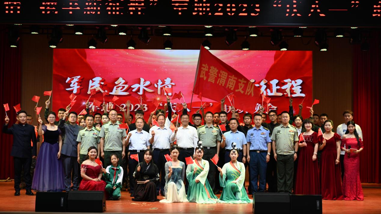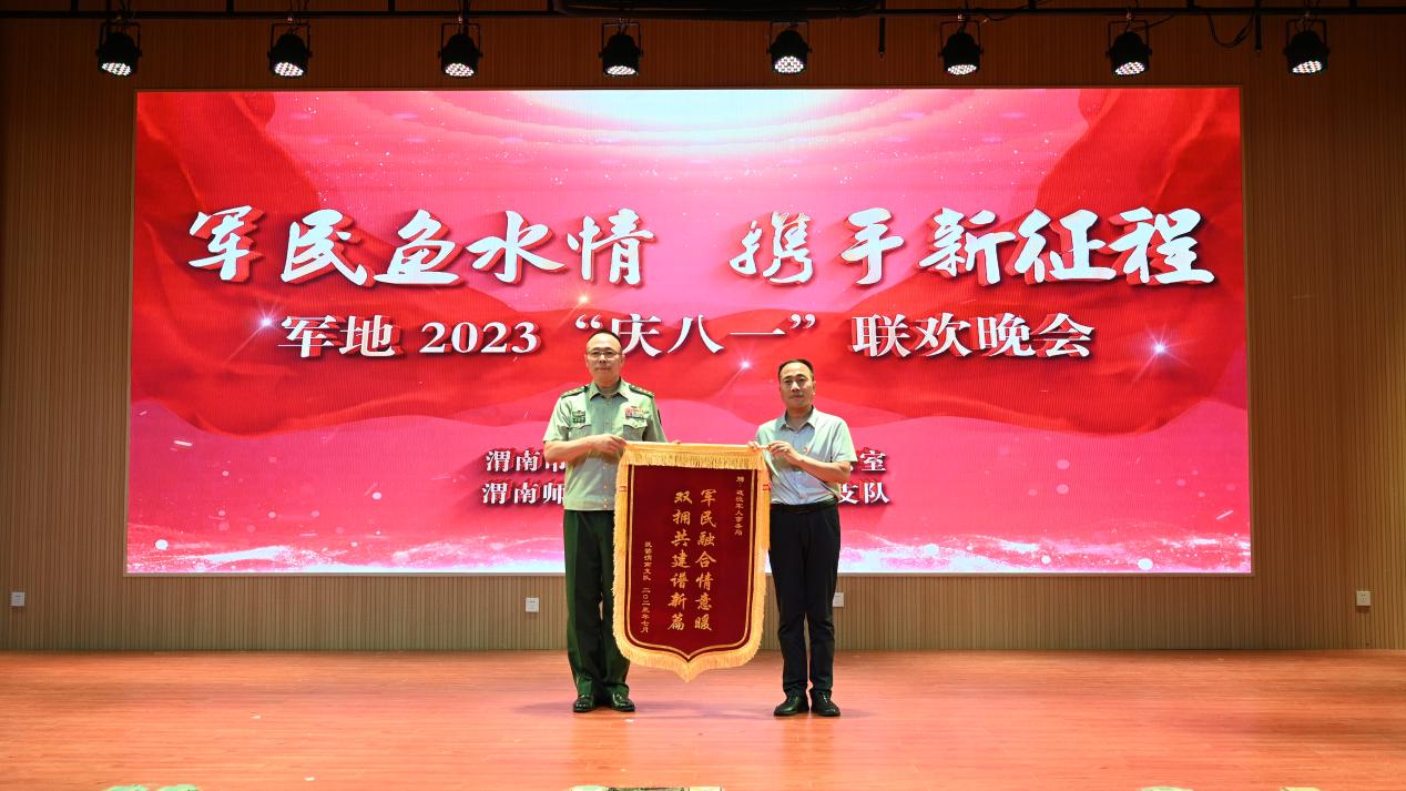 为纪念延安双拥运动80周年、中国人民解放军建军96周年,切实做好“八一”期间拥军优属、拥政爱民工作,进一步密切军政军民关系,推动新时代双拥工作高质量发展,7月24日晚,由渭南市双拥办、伟德国际1949官网和武警渭南支队共同举办的“军民鱼水情、携手新征程”军地2023“庆八一”联欢晚会在武警渭南支队隆重举行。市政府副市长、市公安局局长、市双拥工作领导小组副组长魏重光,渭南军分区副司令员陈扶宁,伟德国际1949官网党委副书记汪勇,市政府副秘书长范晓鹏,市退役军人事务局局长、市双拥办主任郭文平,武警渭南支队支队长危宏伟等领导出席晚会。伟德国际1949官网师生代表走进武警渭南支队,与广大官兵一同唱响拥军爱民心向党的忠诚誓言,奏响新时代强军战歌。