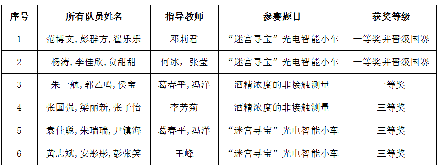 7月22日,在第十一届全国大学生光电设计竞赛(西北区赛)中,伟德官网物理与电气工程学院共组织8个队参加了“酒精浓度的非接触测量”和“迷宫寻宝光电智能小车”两个类型的比赛,最终取得一等奖3项,三等奖3项的优异成绩,3位教师获得优秀指导教师奖,其中2项一等奖将参加全国总决赛,是伟德官网参加该类竞赛以来获奖人次最多的一次。