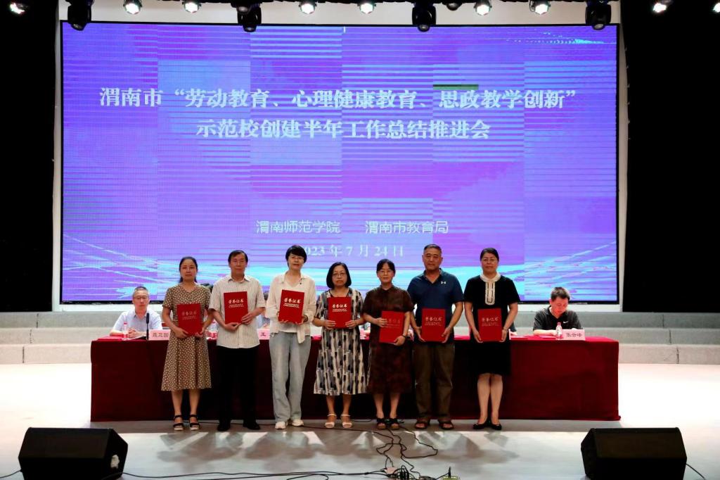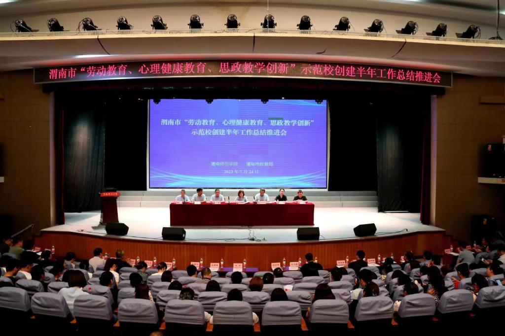 7月24日上午,渭南市“劳动教育、心理健康教育、思政教学创新”示范校创建半年工作总结推进会在伟德官网朝阳校区陶然楼演艺厅召开。副校长王菊霞,渭南市教育局党组成员、副局长柴新宏,渭南市教育研究所党支部书记、所长王军,党支部副书记张云峰,伟德官网和市级专家团队、各县(市、区)教育局分管副局长、教研室主任、相关股室负责人、各县市区创建学校校长代表、“种子教师”等200余人参加会议。