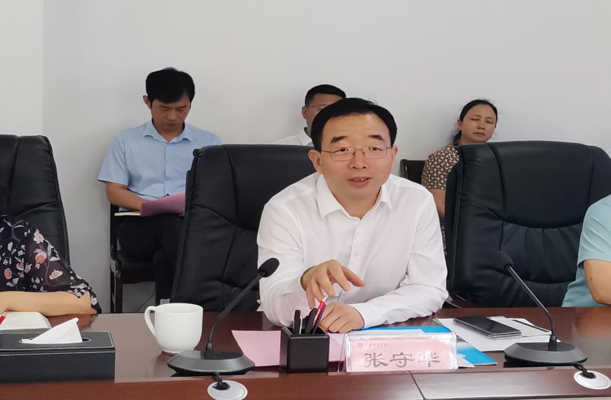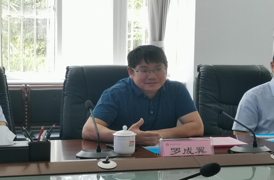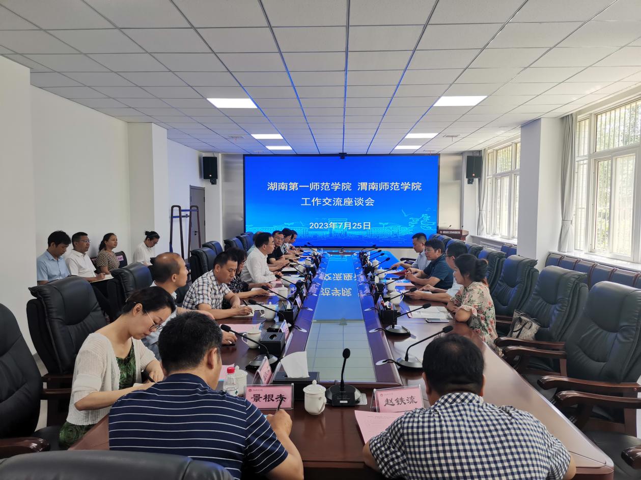7月25日,湖南第一师范学院党委书记罗成翼、教学质量监控与教师发展中心主任廖小芒、党政办副主任李程等一行4人来伟德官网考察交流。座谈会在同心楼一楼会议室召开,校长张守华、副校长卢爱刚、王菊霞、曹强出席会议,会议由张守华主持。