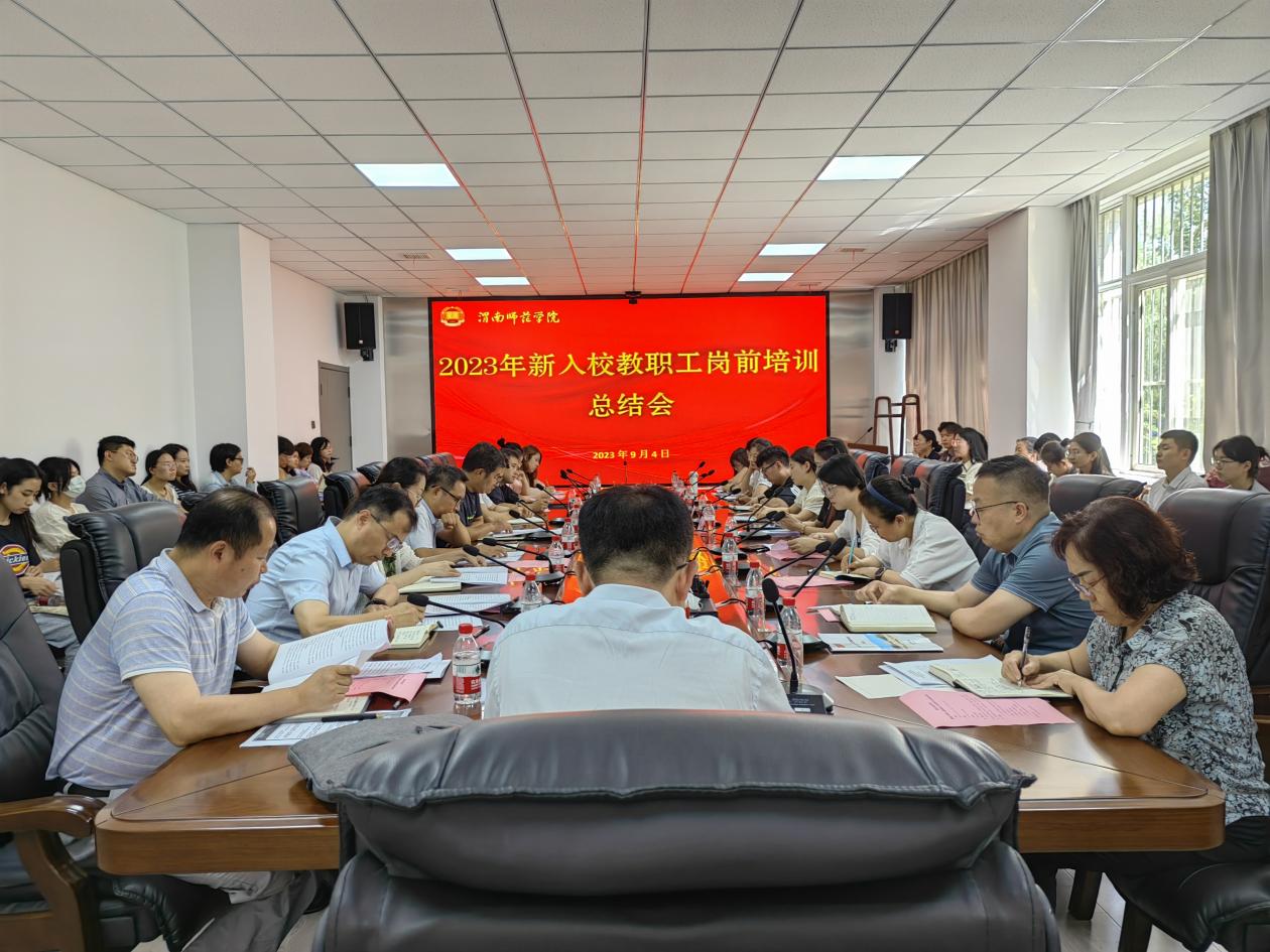9月4日下午,学校召开2023年新入校教职工岗前校本培训工作总结会。校长张守华,党委副书记汪勇,副校长王菊霞,党委委员、宣传部部长李明敏出席会议。副校长曹强主持大会。