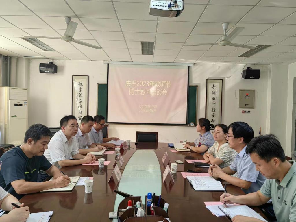 9月8日下午,化学与材料学院召开庆祝2023年教师节博士慰问座谈会,校长张守华出席座谈会,会议由院长焦更生主持。
