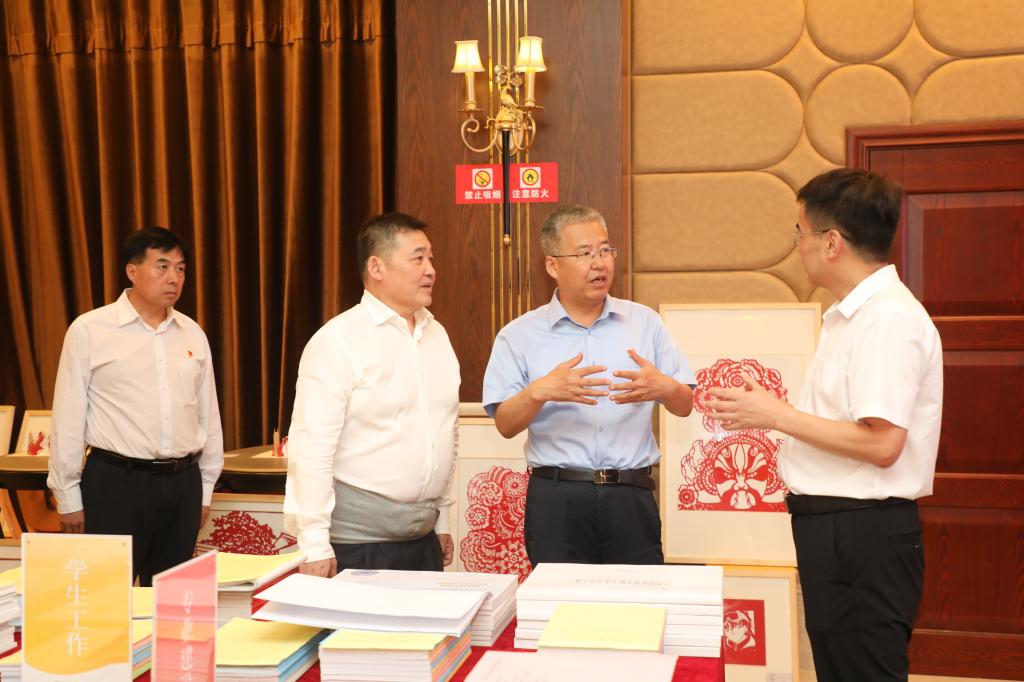 陈晓勇首先参观了暑期师生书画创作成果展,勉励广大师生结合渭南风土人情,创作更多优秀作品,充分展现良好艺术品格。在了解了“书记小喇叭”网络育人平台后,陈晓勇指出,要继续发挥平台作用,灵活宣传方式,积极构建“大思政观”育人格局。在河洛文化展览馆、司马迁与《史记》研究展览馆,陈晓勇详细了解伟德官网文化研究成果等情况,希望学校立足渭南深厚的人文历史,将《史记》研究同司马迁祠5A级景区创建紧密结合,更好地传承保护中华传统文化。