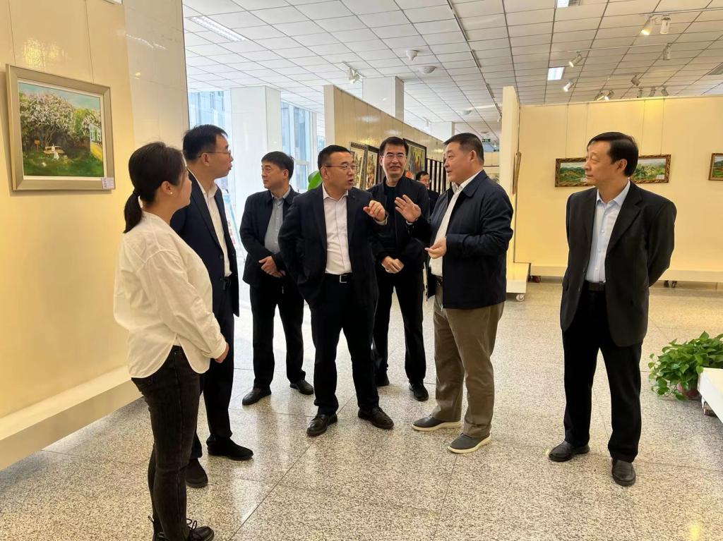 高岭一行深入了解学校中俄合作办学情况,观看了莫斯科艺术学院师生书画作品展、手工作品展及演唱技法教学,参观了经济与管理学院“书记小喇叭”网络育人成果展,以及马克思主义学院智慧教室。