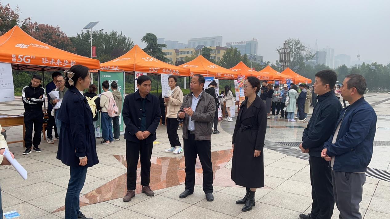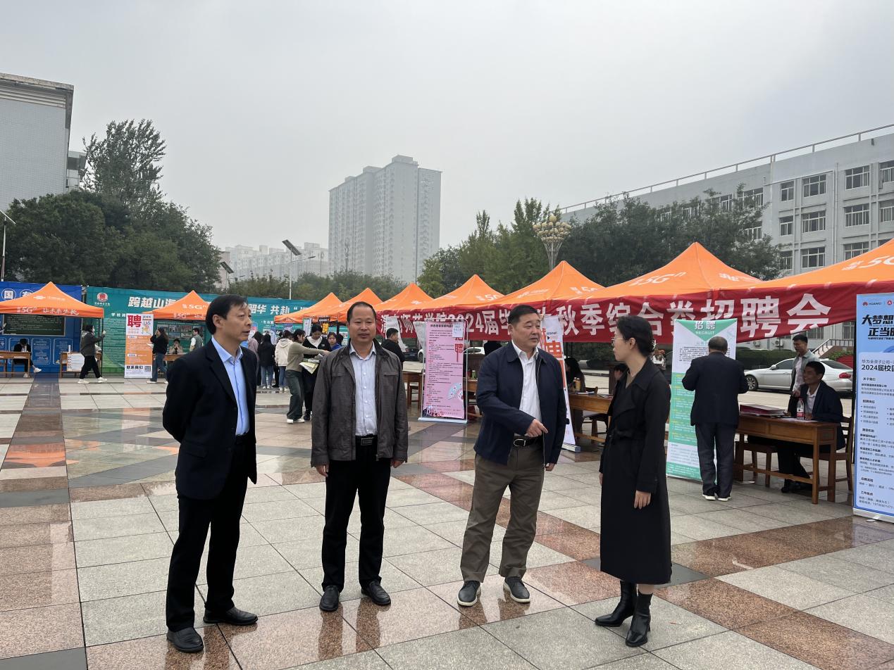 为深入贯彻落实党的二十大精神,认真落实党中央、国务院“稳就业”“保就业”决策部署,抢抓秋季招聘关键期,全力促进学校2024届毕业生顺利就业和高质量就业,10月12日,学校举办2024届毕业生秋季综合类招聘会。学校党委书记卓宇、副书记汪勇来到招聘会现场与企业进行深入交流,并与毕业生进行亲切交谈。