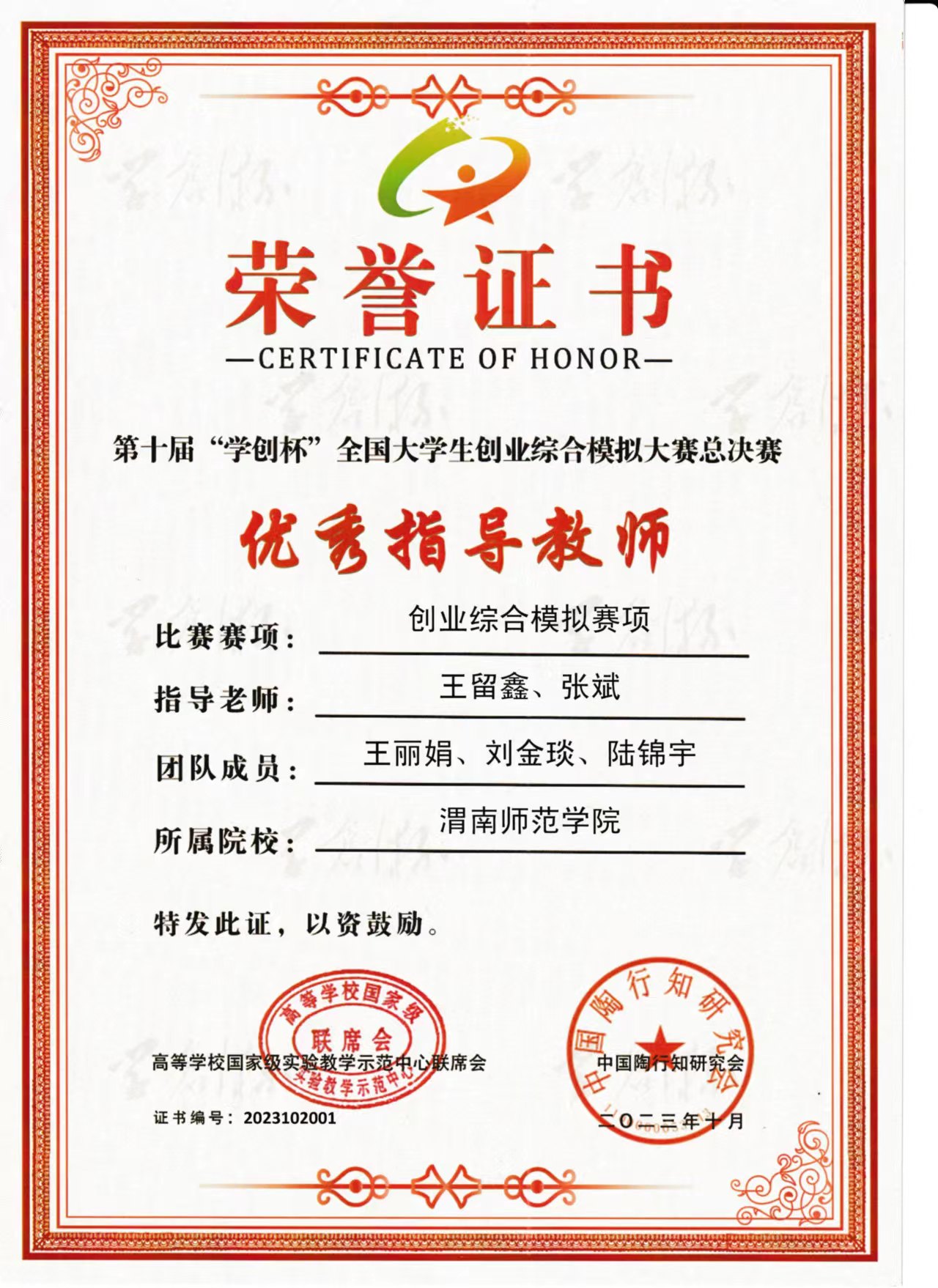 “学创杯”全国大学生创业综合模拟大赛由高等学校国家级实验教学示范中心联席会经管学科组、中国陶行知研究会主办,是全国创业类最具影响力的赛事之一。“学创杯”全国大学生创业综合模拟大赛是经教育部认定的国家级A类赛事,在《2023全国普通高校大学生竞赛排行榜》上列居第48位。经济与管理学院高度重视本次专业竞赛,关注训练进度,组织指导教师团队,给予最大的支持和鼓励。参赛选手们在指导老师的带领下,坚持不懈,永不言弃,提升了分析问题、解决问题的能力,充分展现了经济与管理学院参赛选手的风采。(通讯员 张斌 审核人 李富荣)