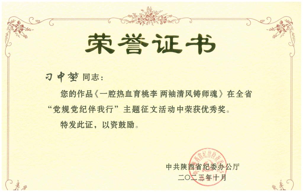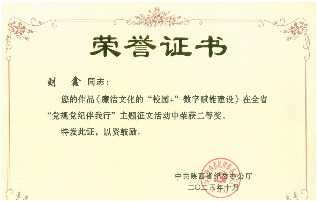 近日,陕西省纪委办公厅公布了“党规党纪伴我行”主题征文活动表彰决定,伟德官网2篇作品在本次活动中荣获佳绩。其中,人文学院教师刘鑫撰写的《廉洁文化的“校园+”数字赋能建设》荣获二等奖、美术学院教师刁中堃撰写的《一腔热血育桃李两袖清风铸师魂》荣获优秀奖。