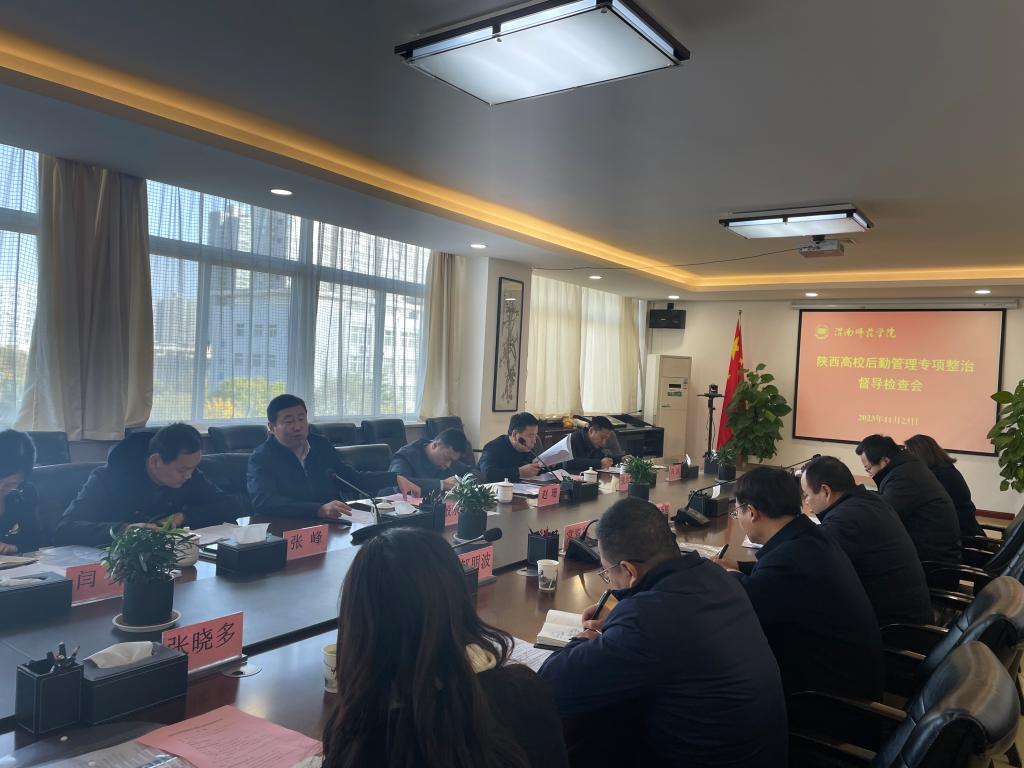 11月23日,陕西省教育厅高校后勤管理专项整治督导检查第四工作组来伟德官网开展督导检查工作,督导组组长、西安工程大学副校长殷永建带队督导检查,学校党委委员、副校长常青林出席汇报会并致辞。后勤服务中心党总支书记邹朋波主持汇报会。