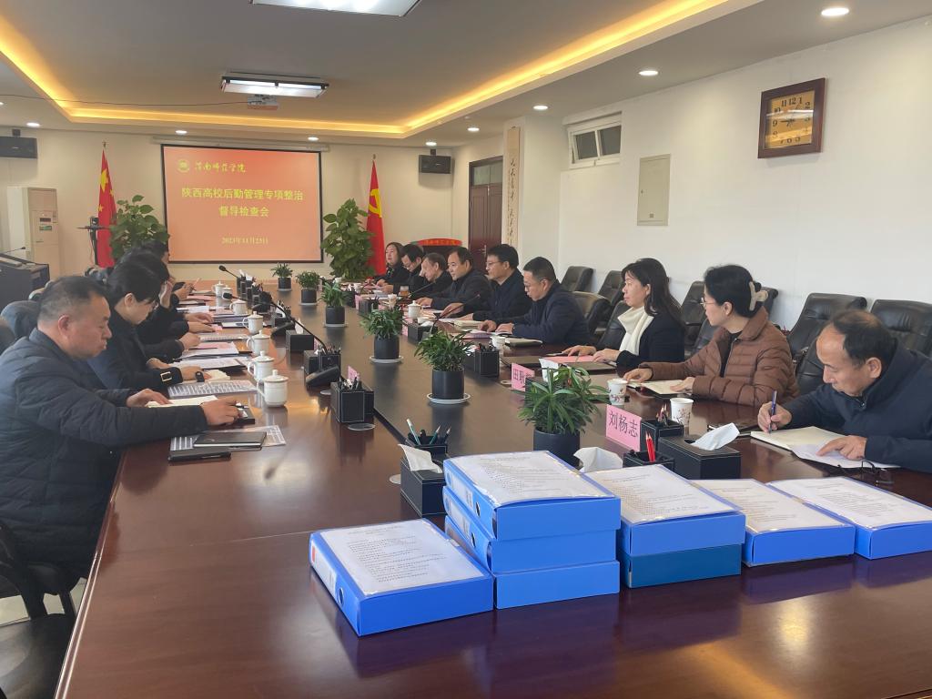 督导检查组成员、省教育厅发展规划处赵珊、西安工程大学后勤处处长张峰、西安科技大学后勤处副处长张治红、西安工程大学后勤处副处长闫斐、陕西铁路工程职业技术学院后勤保障与安全保卫处综合科科长何冰、渭南职业技术学院渭雨达管理服务有限公司董事长王波参加督导检查,学校纪检监察室、审计处、学工部、校工会、后勤服务中心、资产经营有限责任公司相关负责同志参加汇报会。(通讯员 安幼薇 审核人 王争辉)