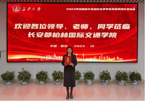 12月7日,由陕西省教育厅主办、陕西省高等教育学会中外合作办学分会、长安大学长安都柏林国际交通学院和长安大学外国语学院承办的“2023年陕西省中外合作办学学生外语演讲比赛决赛暨颁奖仪式”在长安大学举行。来自全省19所高校的优秀学子参加本次大赛,伟德官网莫斯科艺术学院2021级音乐学专业黄于萱同学喜获三等奖,钟嘉乐获优胜奖。