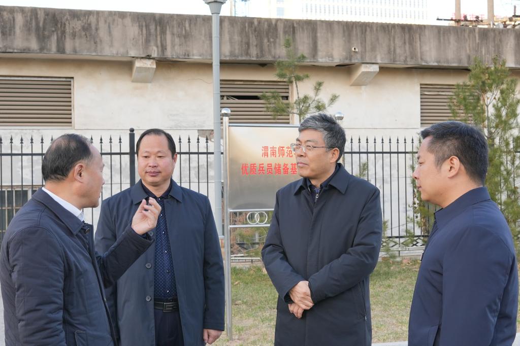 12月7日下午,陕西省双拥工作领导小组办公室副主任、省退役军人事务厅副厅长巨小弟一行在渭南市政府副秘书长范晓鹏,渭南市双拥工作领导小组办公室主任、退役军人事务局局长郭文平陪同下来校调研指导“军地共建社会主义精神文明示范点”建设情况。校党委书记卓宇,党委副书记汪勇,党委委员、宣传部部长李明敏陪同调研。