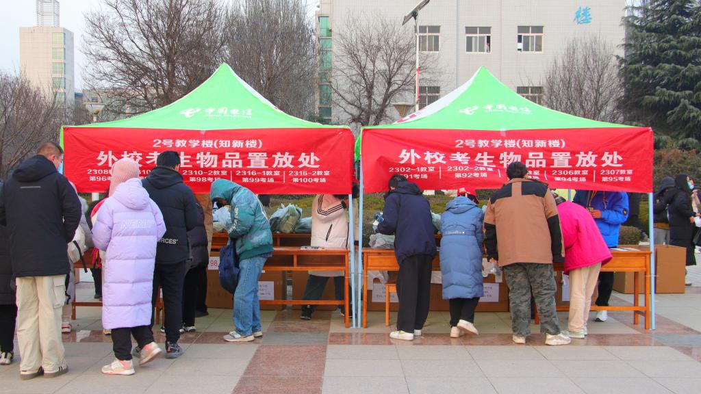 校团委组织200余人次志愿者投入到此次研考工作中,全体志愿者积极报名,热情参与研考各项工作,提前为考生准备置物袋、信封以及暖宝宝等暖心物品,用青春力量为广大考生做好服务保障工作。