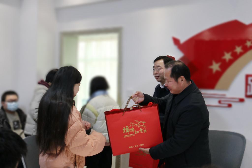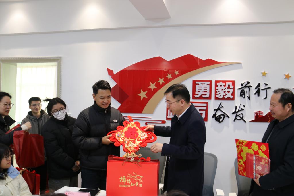 活动现场,处处洋溢着喜庆欢快的氛围。校领导与同学们亲切交谈,了解学生具体情况,并勉励他们努力学习,用知识改变命运,用奋斗成就未来。随后,校领导为同学们发放新春大礼包并送上暖心祝福。