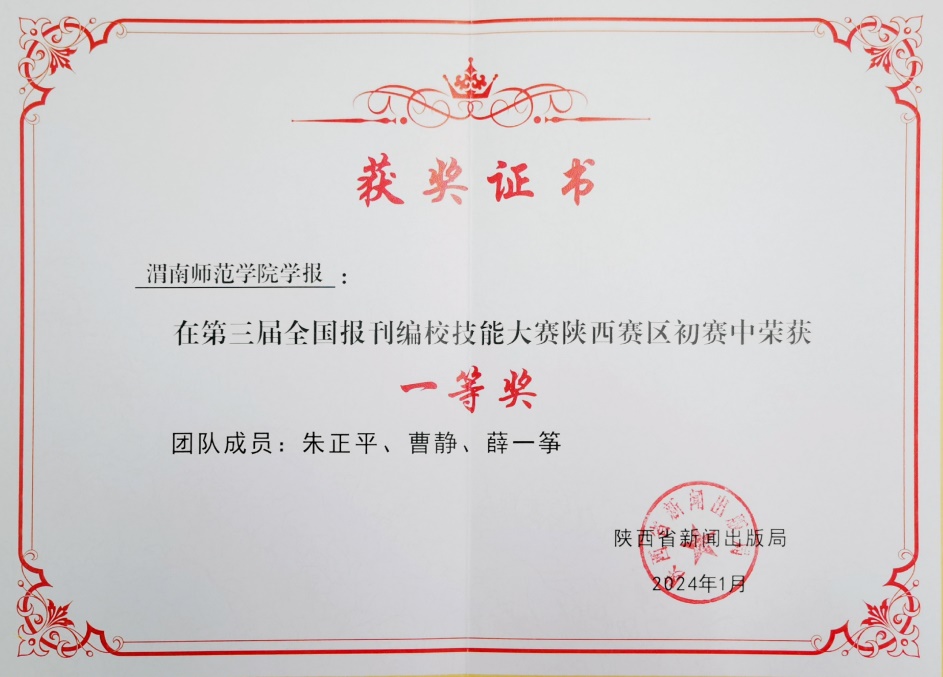 2024年1月16日,在全省新闻出版(版权)工作会议上,陕西省新闻出版局对第三届全国报刊编校技能大赛陕西赛区的优秀团队进行表彰。伟德官网学报编辑部团队荣获一等奖,展现了编辑扎实的专业基本功和风采。