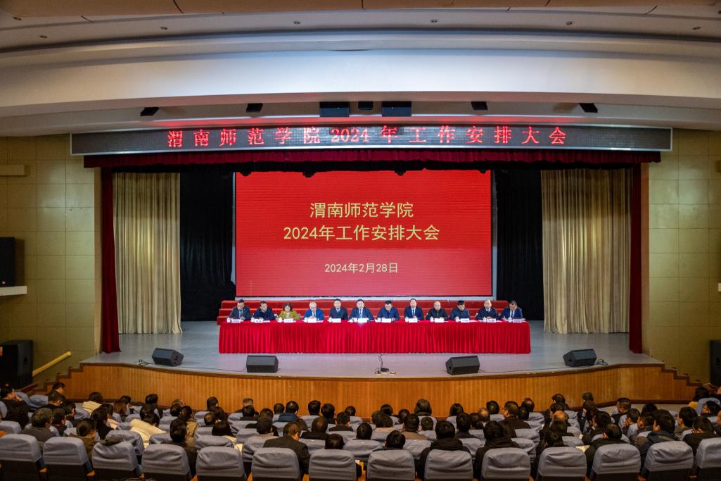 张守华回顾了2023年学校重点工作,分析了学校发展面临的形势和任务,并从着力加强党的全面领导、全面实施立德树人工程、提升师范人才自主培养质量、深入实施学科攀登工程、有组织开展科技创新、建设高质量教师队伍、开创开放办学新局面、有组织服务区域经济社会发展、提升办学条件保障水平等方面对2024年重点工作进行了安排部署。他强调,全体教职员工要统一思想、坚定信心、埋头苦干,强化使命担当,深化改革创新,结合实际抓好各项工作落实,加快构建学校高质量发展工作新格局,奋力开创全面提高师范人才自主培养质量新局面,推进一流师范大学建设。
