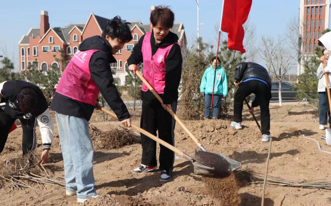 剪彩仪式落幕,开启植树共建活动。学校领导和师生代表热情高涨,分工合作。他们挥锹铲土,合力扶苗,培土围堰,提水浇灌,各环节有条不紊、衔接有序,以实际行动践行习近平生态文明思想,为校园生态环境建设做出贡献。