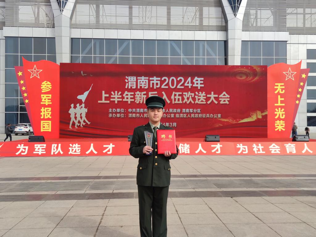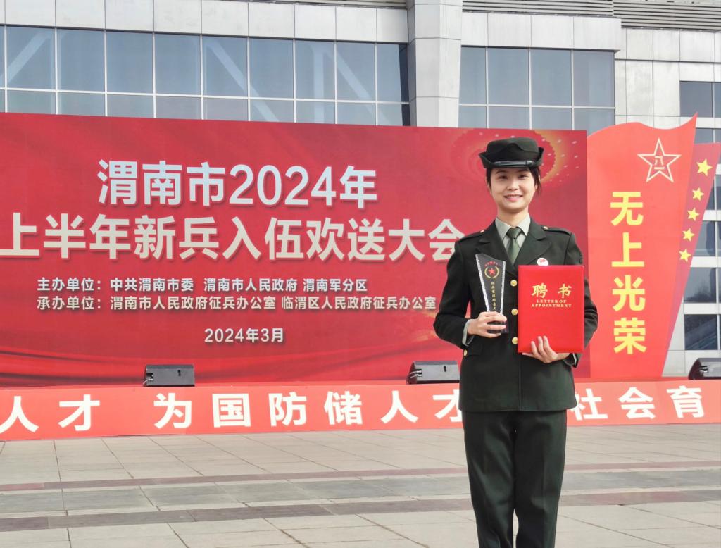 近日,渭南市2024上半年新兵入伍欢送大会上伟德官网退伍大学生郑子馨、李昱霖被聘为渭南市“征兵形象宣传大使”。